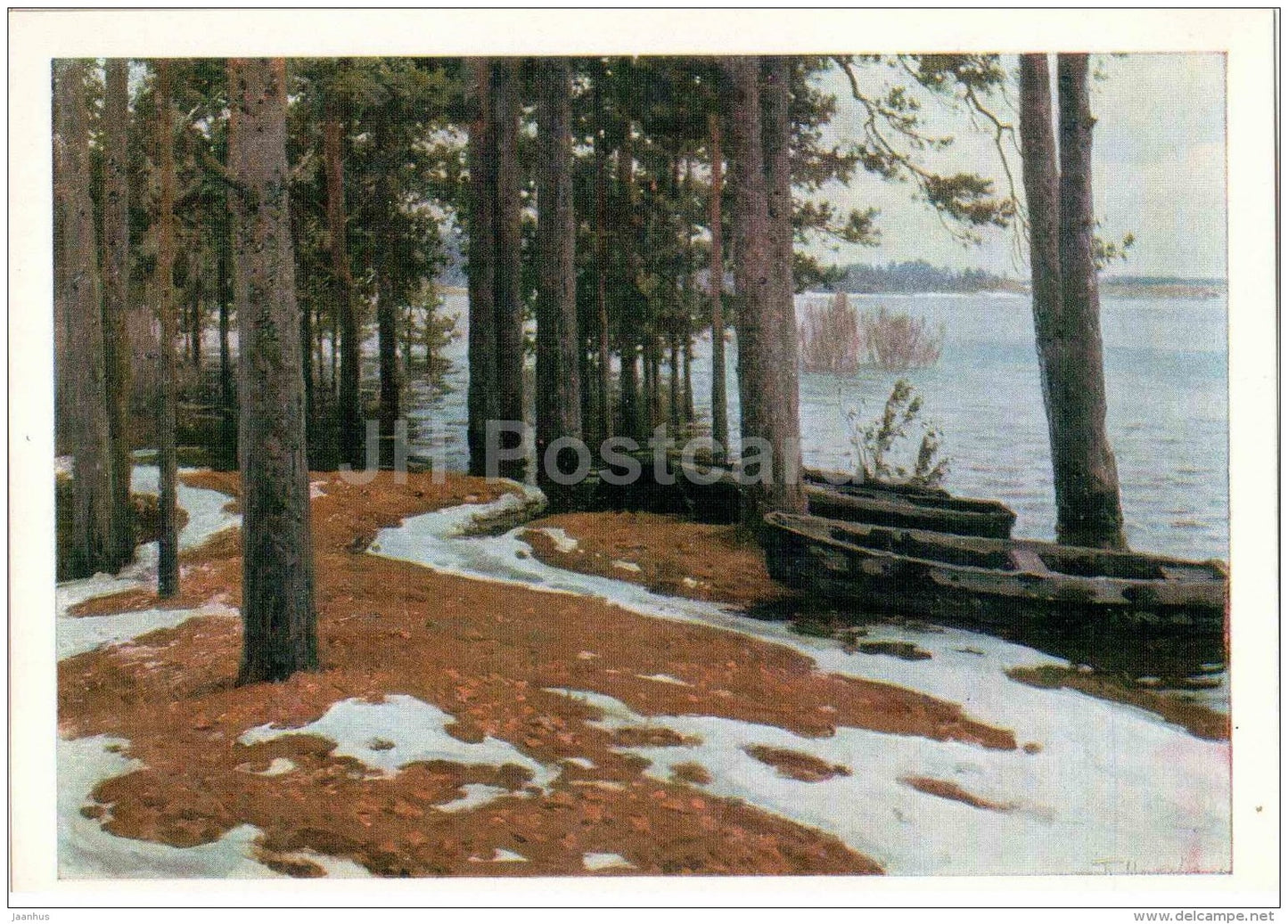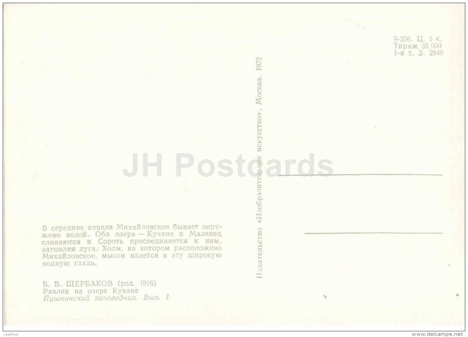 painting by B. Shcherbakov - Flood on lake Kuchane - boats - Pushkin Reserve - 1972 - Russia USSR - unused