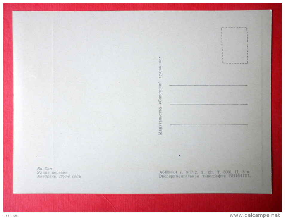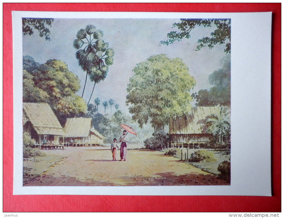 painting by Ba San - Village Street , 1950s - Birma - burmese art - unused