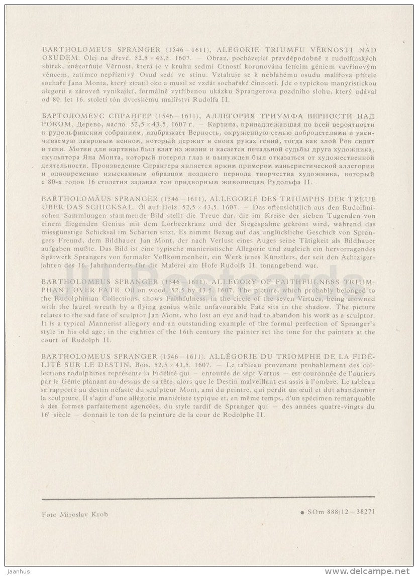 painting by Bartholomeus Spranger - Allegory of Faithfulness - Flemish art - large format card - Czech - unused