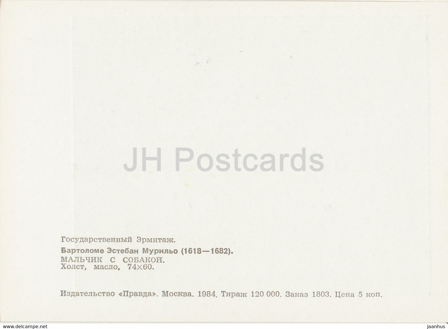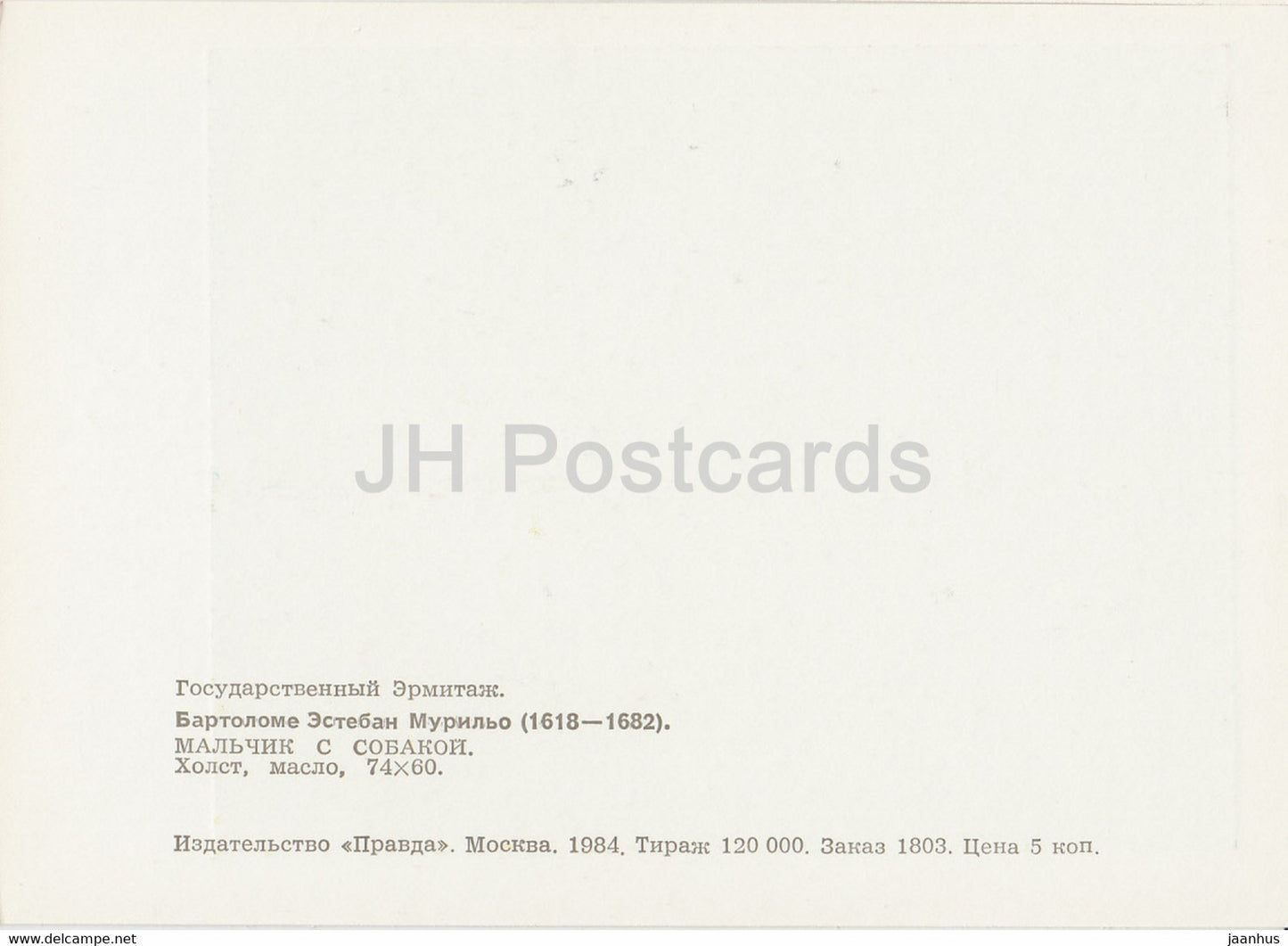 painting by Bartolome Esteban Murillo - Boy with Dog - Spanish art - 1984 - Russia USSR - unused