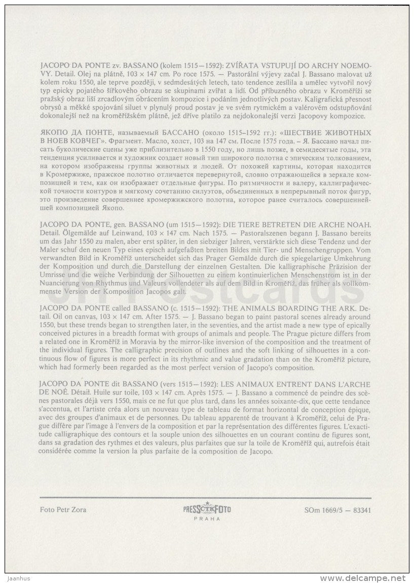 painting by Bassano - The Animals Boarding The Ark - hare - dog - cat - Italian art - large format card - Czech - unused