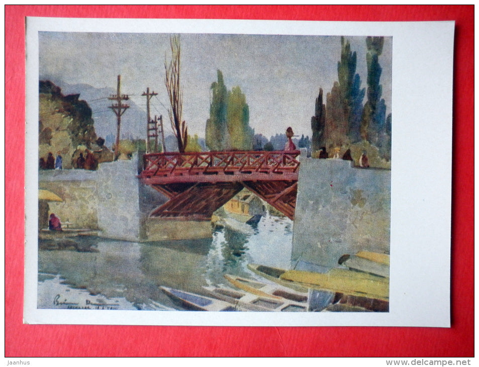 painting by Biren De - Bridge in Srinagar - contemporary art - art of india - unused