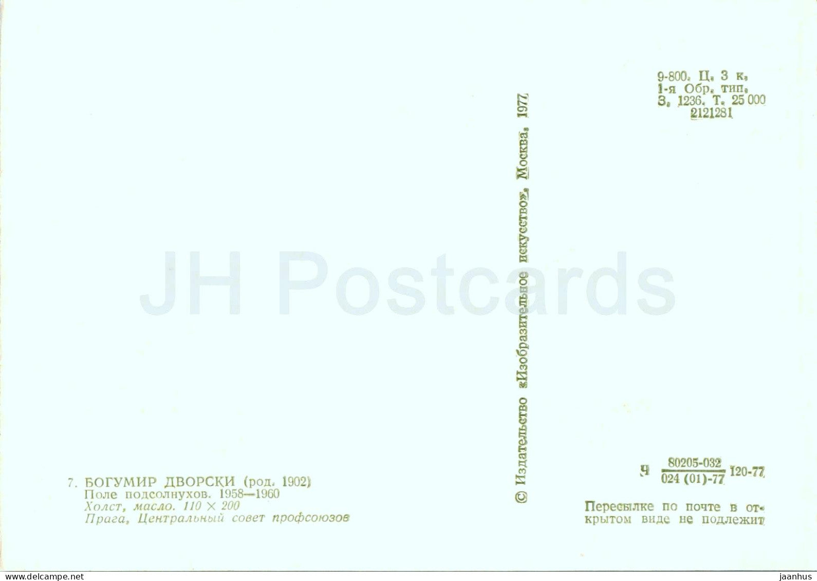 painting by Bohumir Dvorsky - The Field of Sunflowers - Czech art - 1977 - Russia USSR - unused