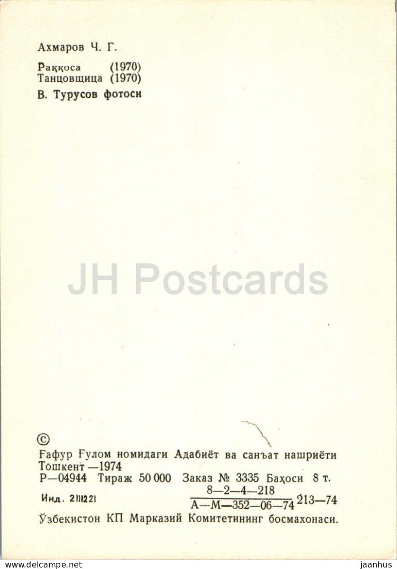 painting by C. Akhmarov - A Dancer - woman - folk costumes - Uzbekistan art - 1974 - Uzbekistan USSR - unused