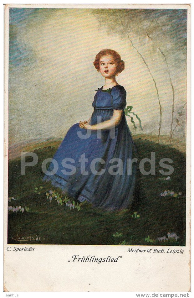 painting by C. Sporleder - Fruhlingslied - girl - serie 2327 - MBL - German Art - old postcard - Germany - used