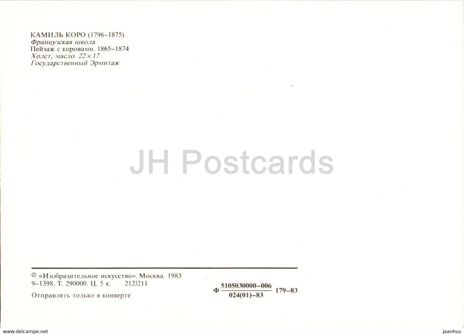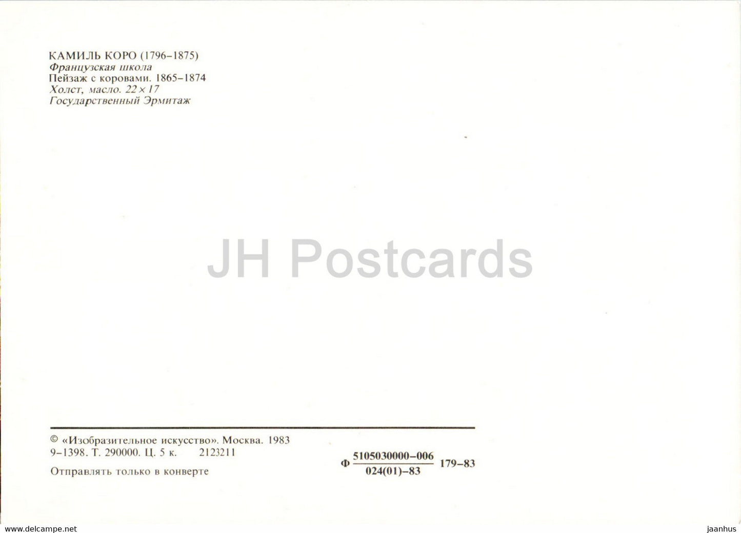painting by Camille Corot - Landscape with cows - French art - 1983 - Russia USSR - unused