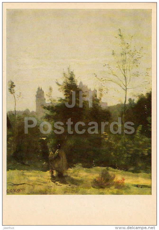 painting by Camille Corot - Le Chateaux de Pierrefonds , 1860 - French art - 1975 - Russia USSR - unused