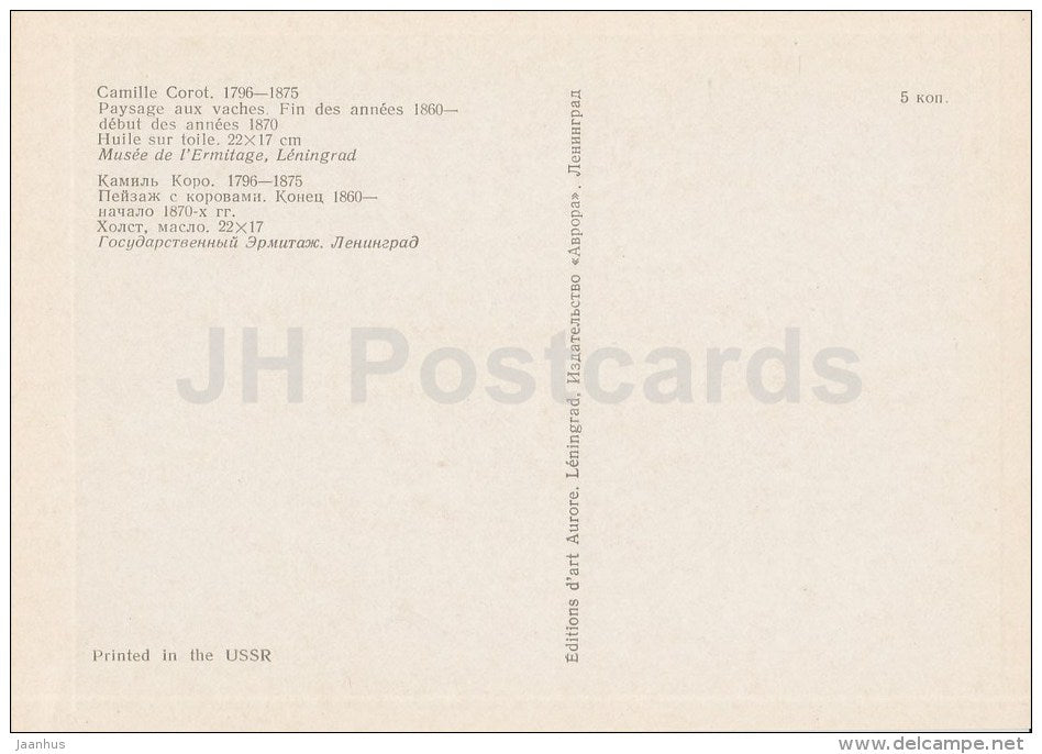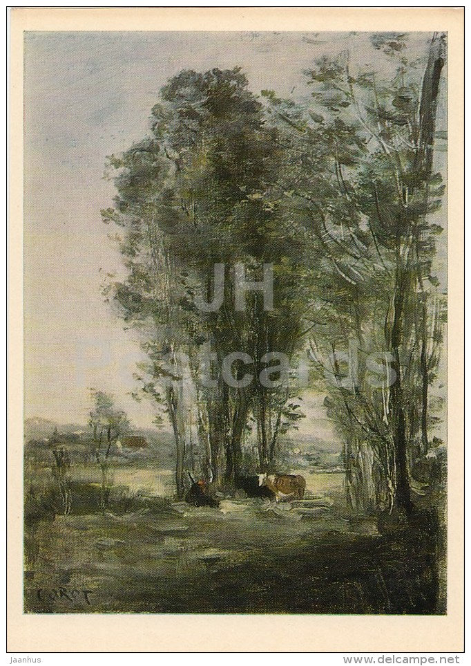 painting by Camille Corot - Paysage aux vaches , 1870 - French art - 1975 - Russia USSR - unused