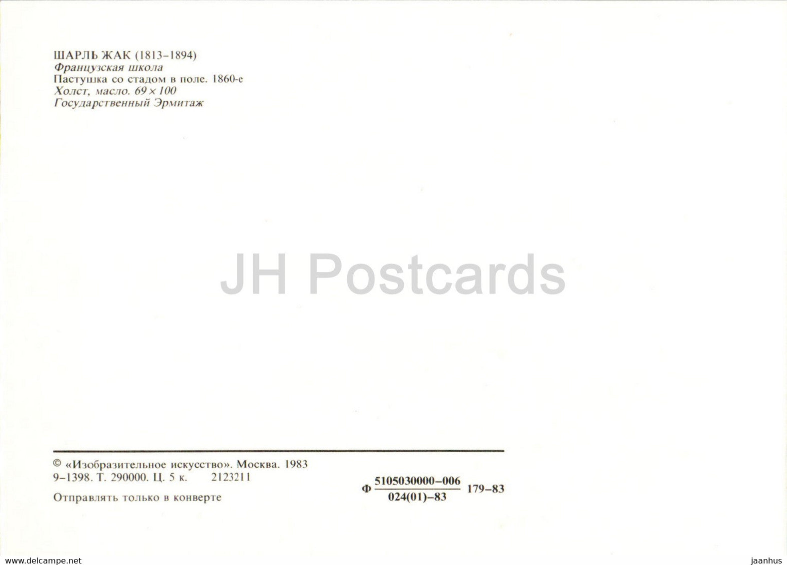 painting by Charles Emile Jacque - Shepherdess with herd in the field - cow - French art - 1983 - Russia USSR - unused