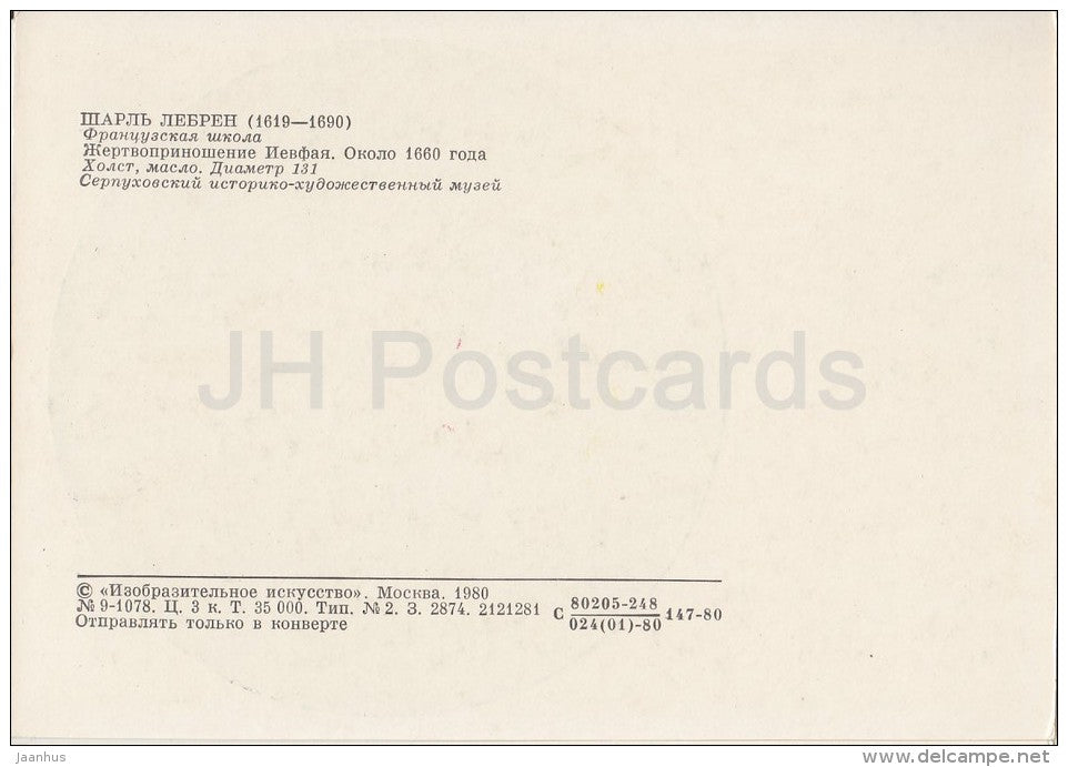 painting by Charles Le Brun - The sacrifice of Ivthaeus , 1660s - French art - 1980 - Russia USSR - unused