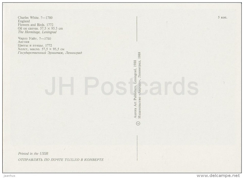 painting by Charles White - Flowers and Birds , 1772 - English art - Russia USSR - 1988 - unused
