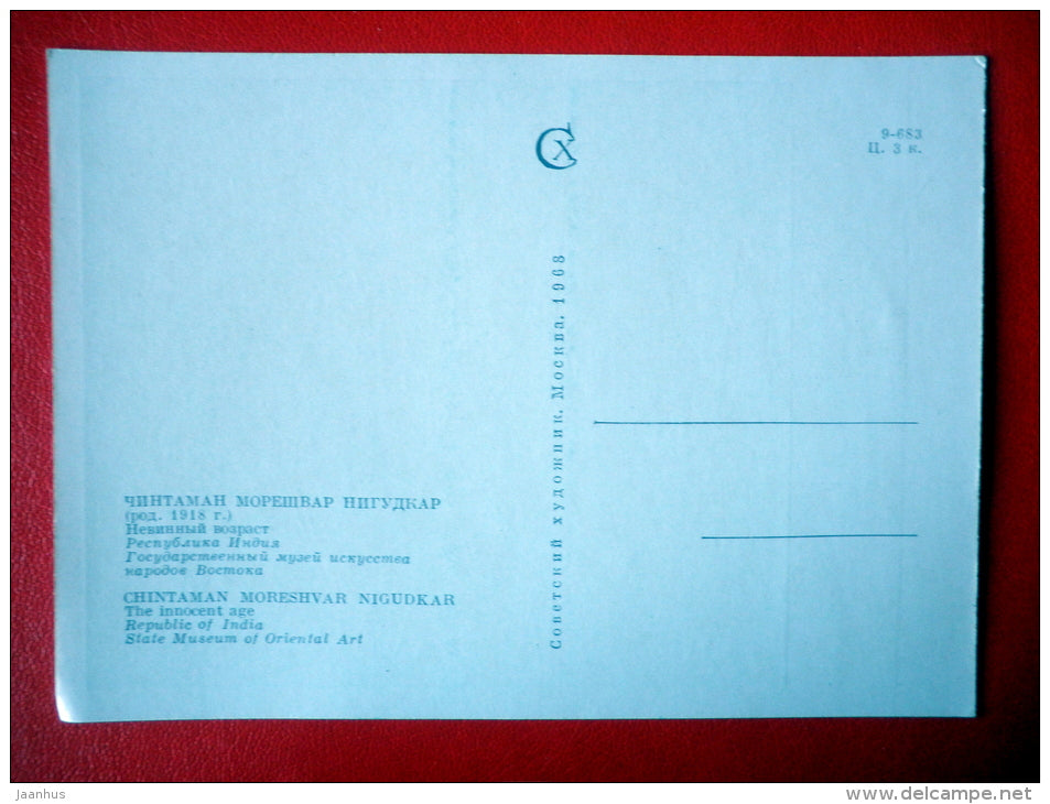 painting by Chintaman Moreshvar Nigudkar . The Innocent Age - boy - indian art - unused