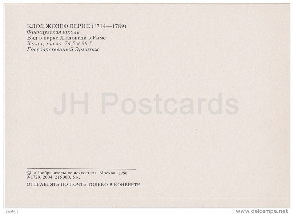 painting by Claude Joseph Vernet - View of the park Ludovisi in Rome - French art - Russia USSR - 1986 - unused