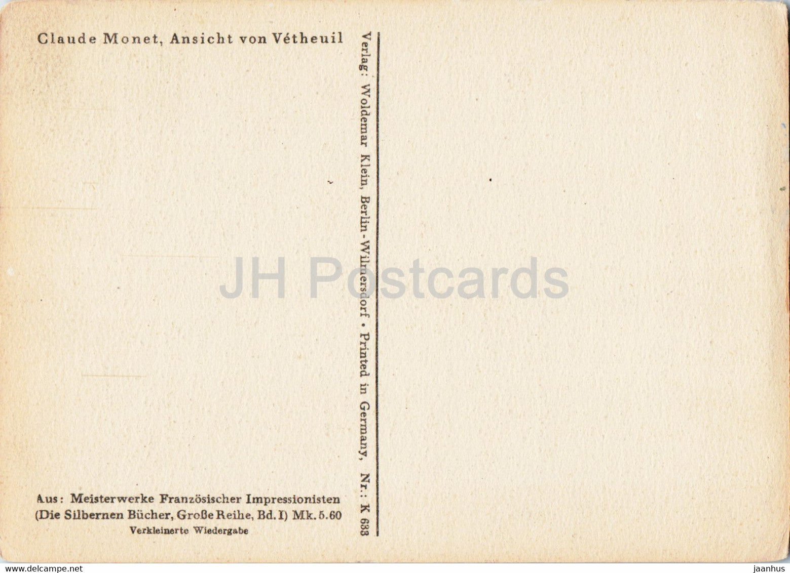 painting by Claude Monet - Ansicht von Vetheuil - French art - old postcard - Germany - unused