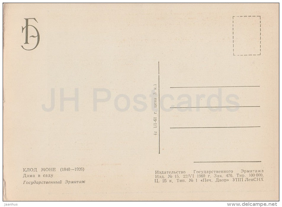 painting by Claude Monet - Lady in the Garden - French art - 1960 - Russia USSR - unused