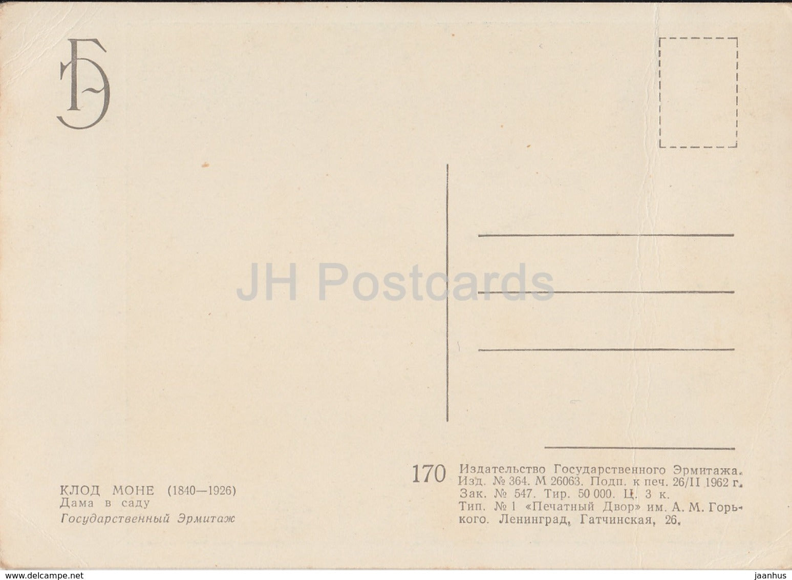 painting by Claude Monet - Woman in the Garden - French art - 1962 - Russia USSR - unused
