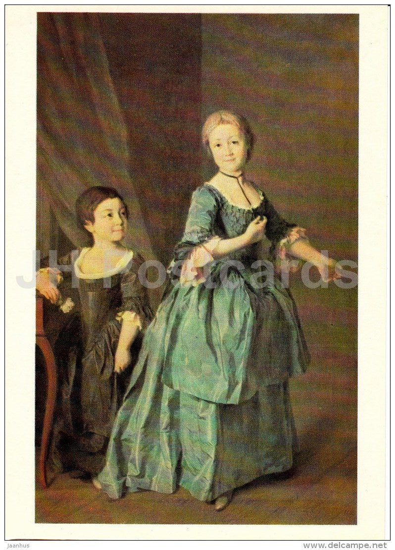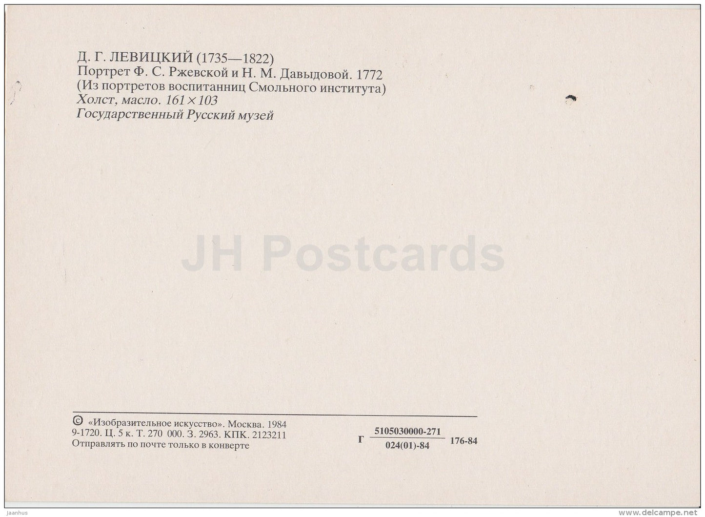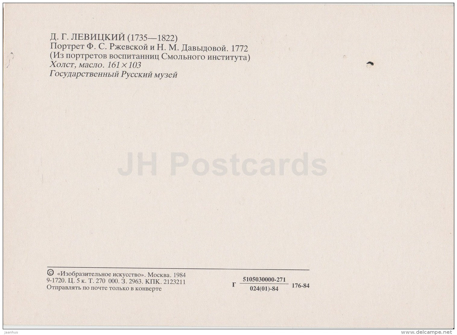 painting by D. Levitsky - Portrait of F. Ryzhevskaya and N. Davydova , 1772 - Russian art - 1984 - Russia USSR - unused