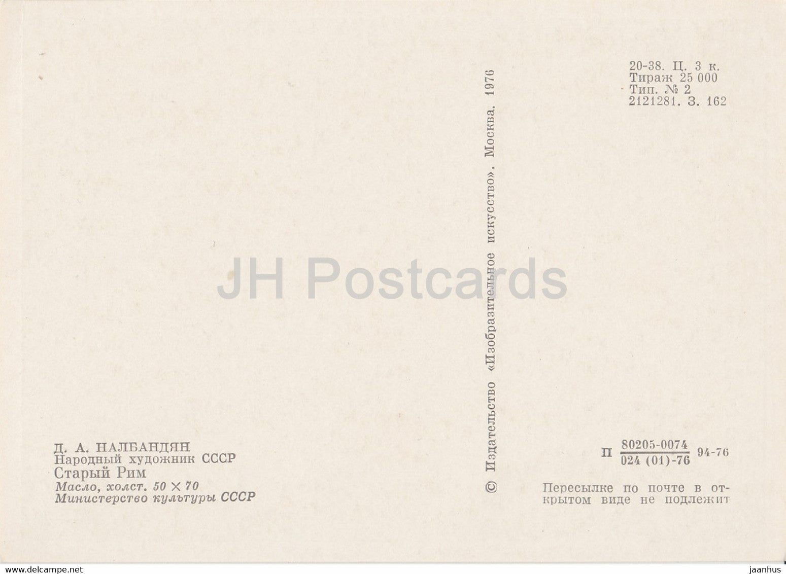 painting by D. Nalbandyan - Old Rome - Armenian art - 1976 - Russia USSR - unused