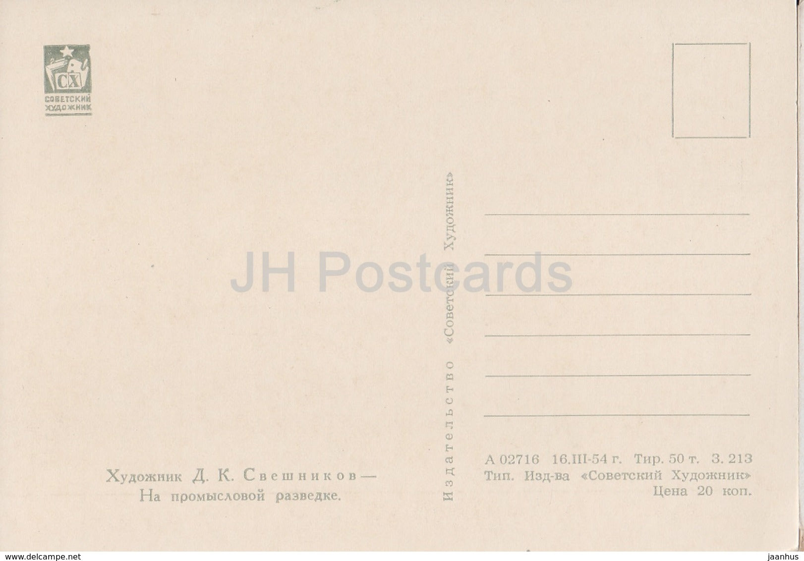 painting by D. Sveshnikov - On industrial exploration - Russian art - 1954 - Russia USSR - unused