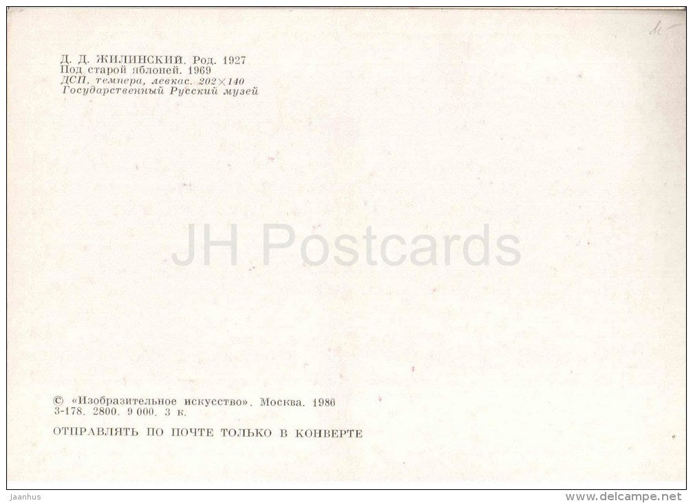 painting by D. Zhilinsky - Under the old Aplle-Tree , 1969 - russian art - unused