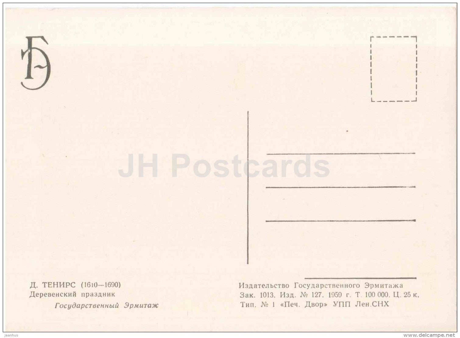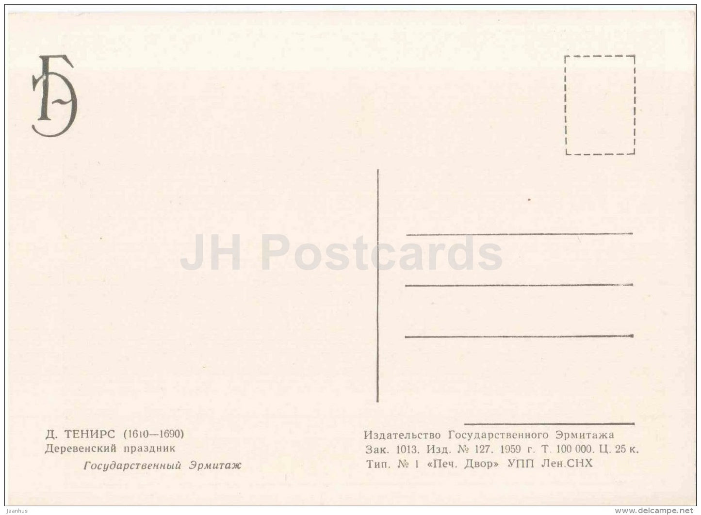 painting by David Teniers the Younger - Festival in Village - Flemish art - 1959 - Russia USSR - unused
