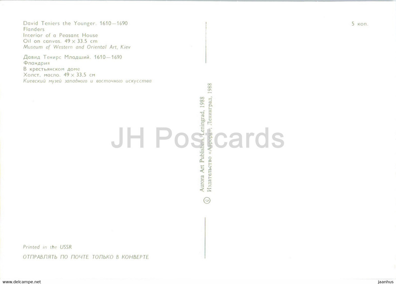 painting by David Teniers the Younger - Interior of a Peasant House - cow - Flemish art - 1988 - Russia USSR - unused