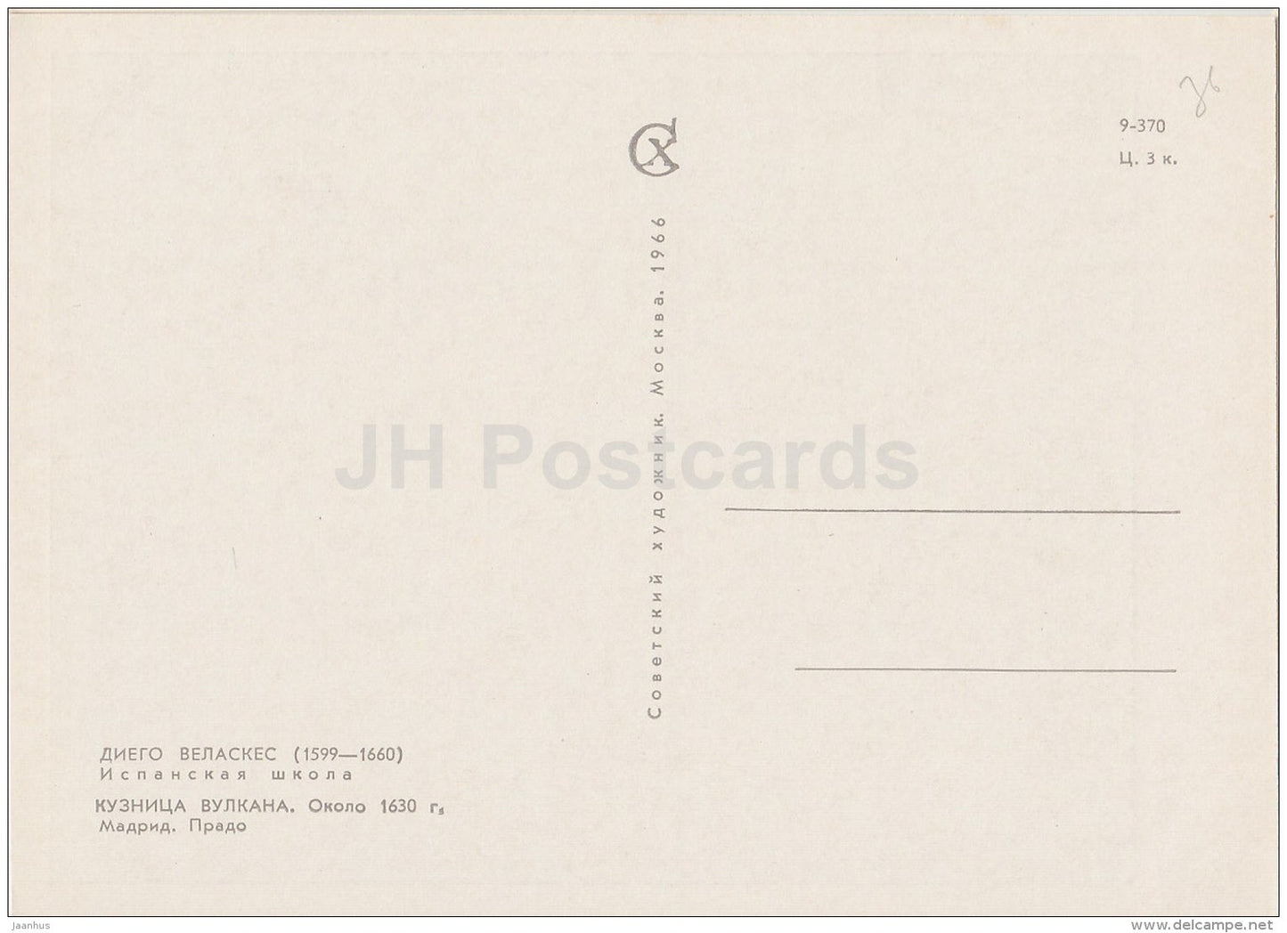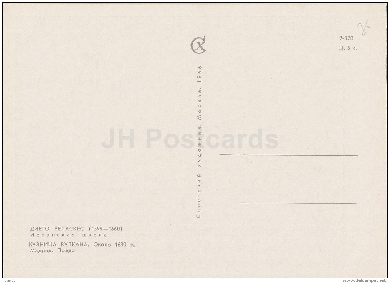 painting by Diego Velazquez - Volcano Smithy , 1630 - Spanish art - 1966 - Russia USSR - unused
