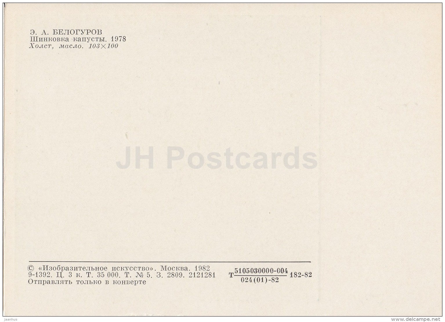 painting by E. Belogurov - Cabbage shredder , 1978 - working woman - Russian Art - 1982 - Russia USSR - unused