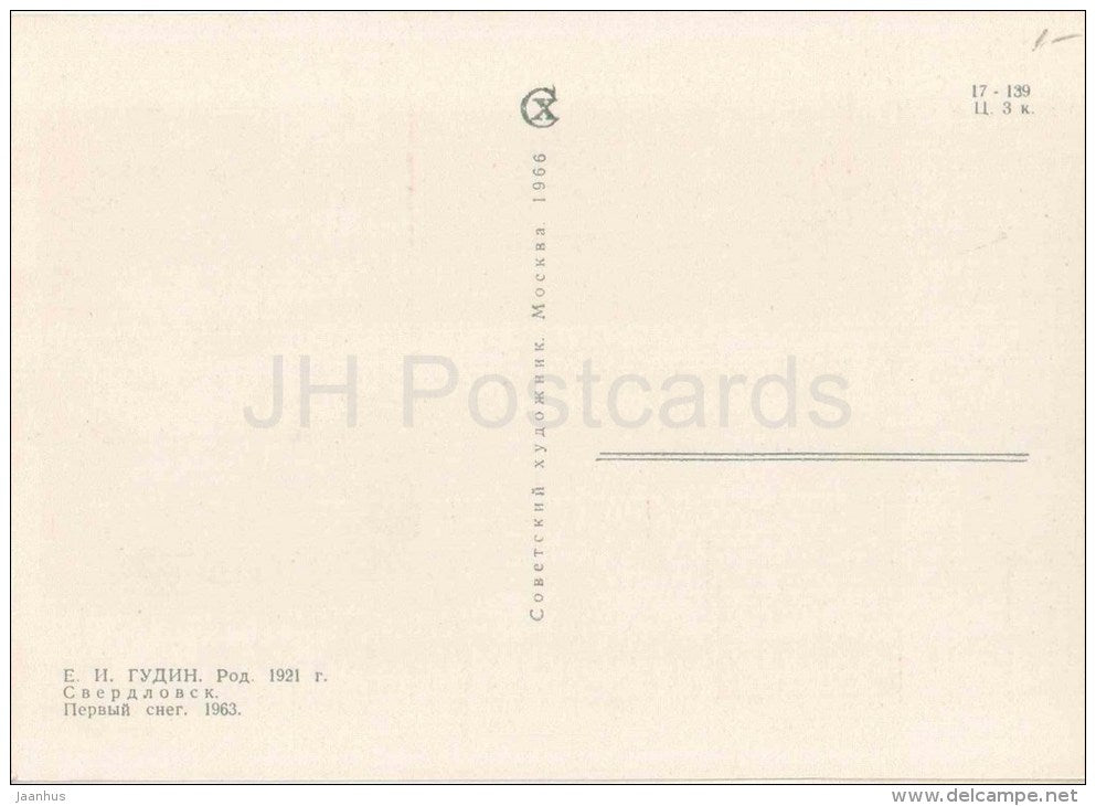 painting by E. Gudin - Sverdlovsk . First Snow , 1963 - truck - forest industry - russian art - unused