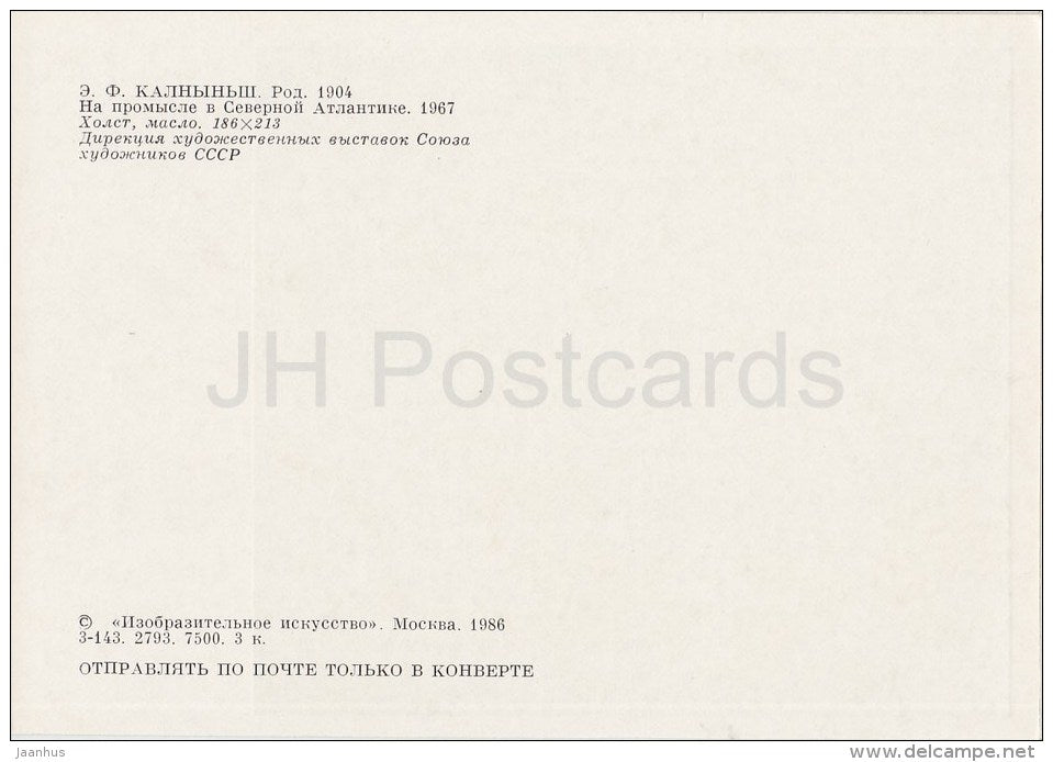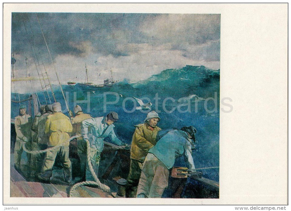 painting by E. Kalnins - On the North Atlantic fishery , 1967 - fishermen - Latvian art - 1986 - Russia USSR - unused
