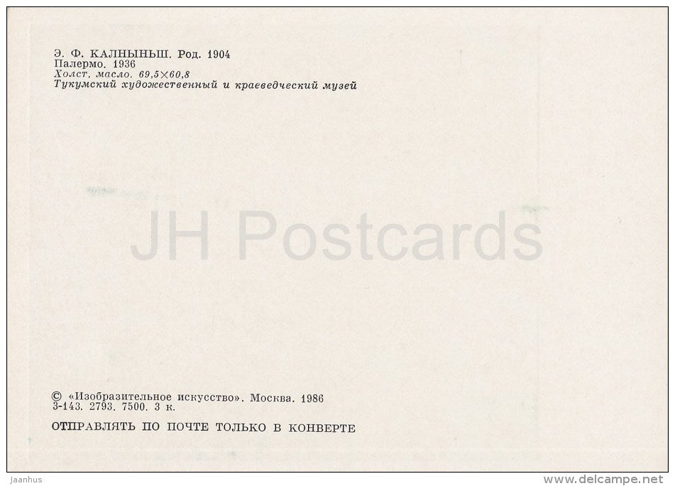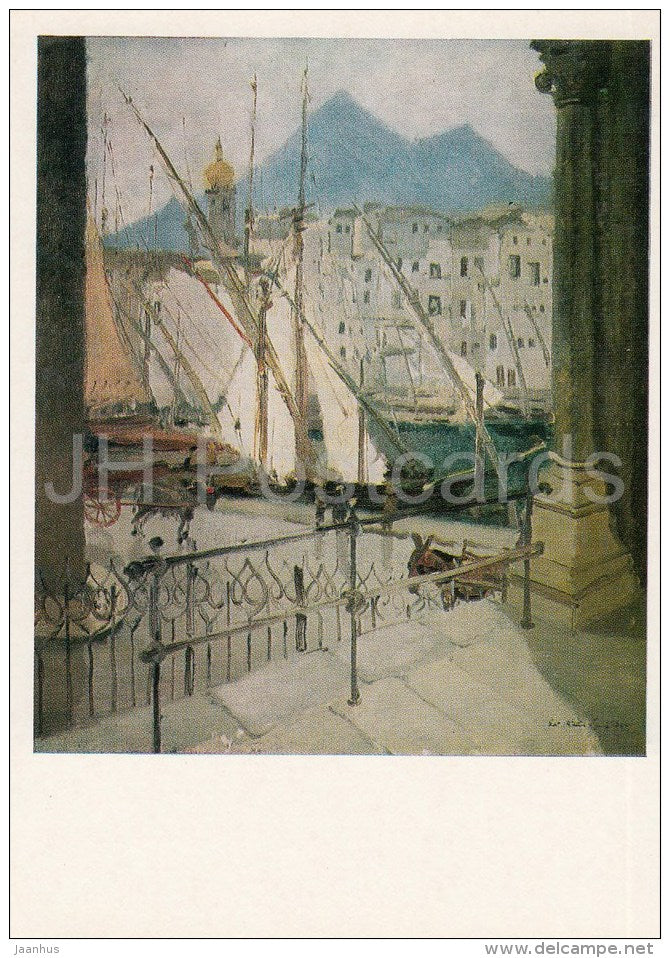 painting by E. Kalnins - Palermo . Italy , 1936 - sailing boat - Latvian art - 1986 - Russia USSR - unused