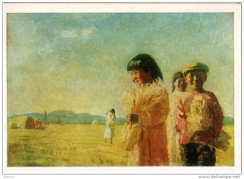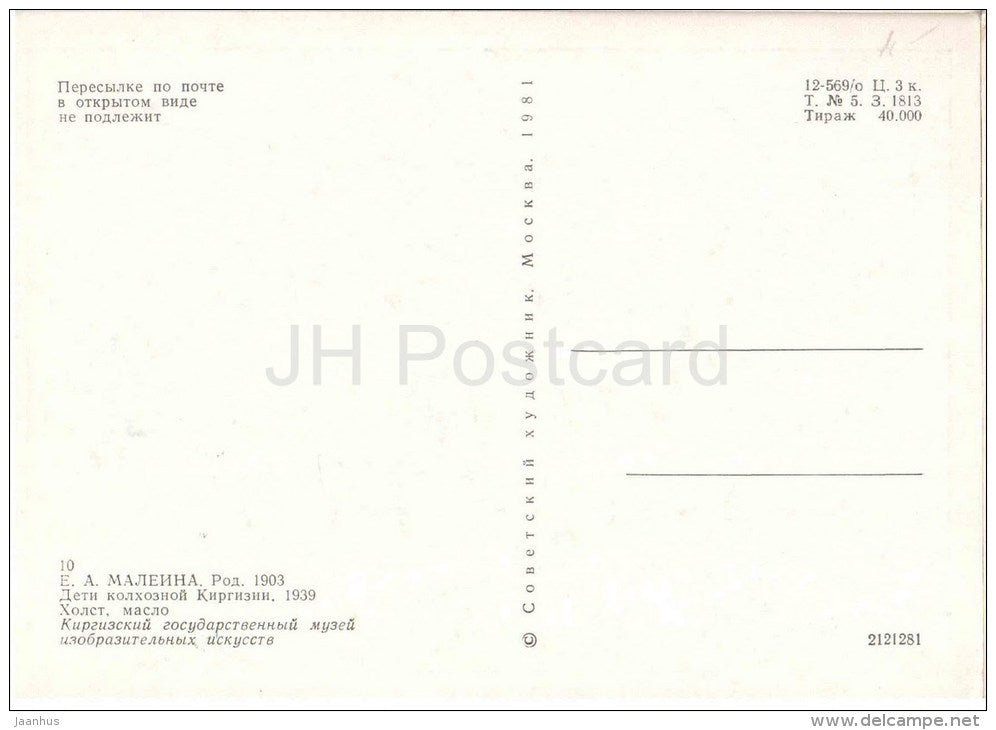 painting by E. Maleyna - Children of Kyrgyzstan Kolkhoz , 1939 - russian art - unused