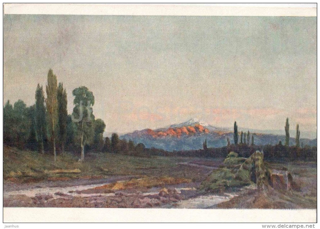 painting by E. Mamedov - Lerik - landscape - mountain - azerbaijan art - unused