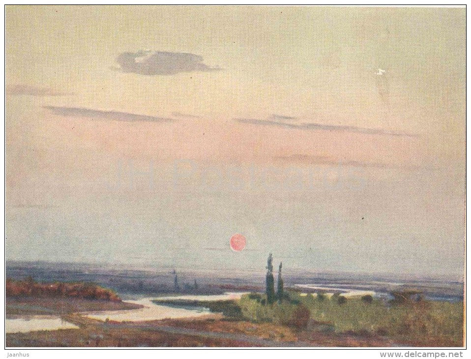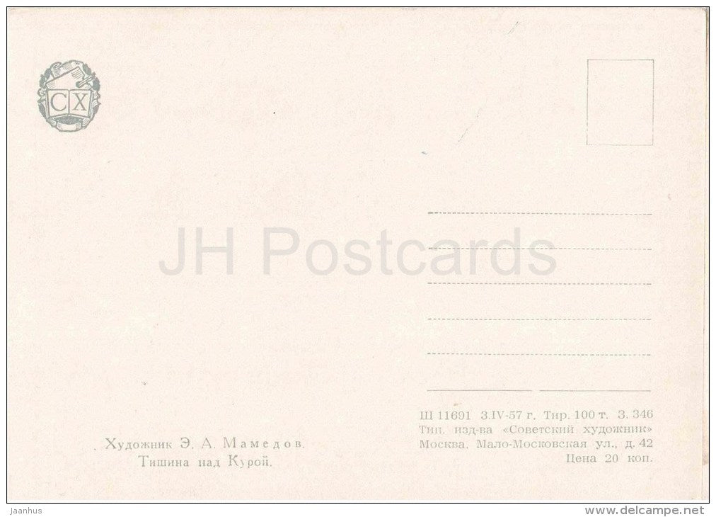 painting by E. Mamedov - The silence over the Kura - landscape - azerbaijan art - unused