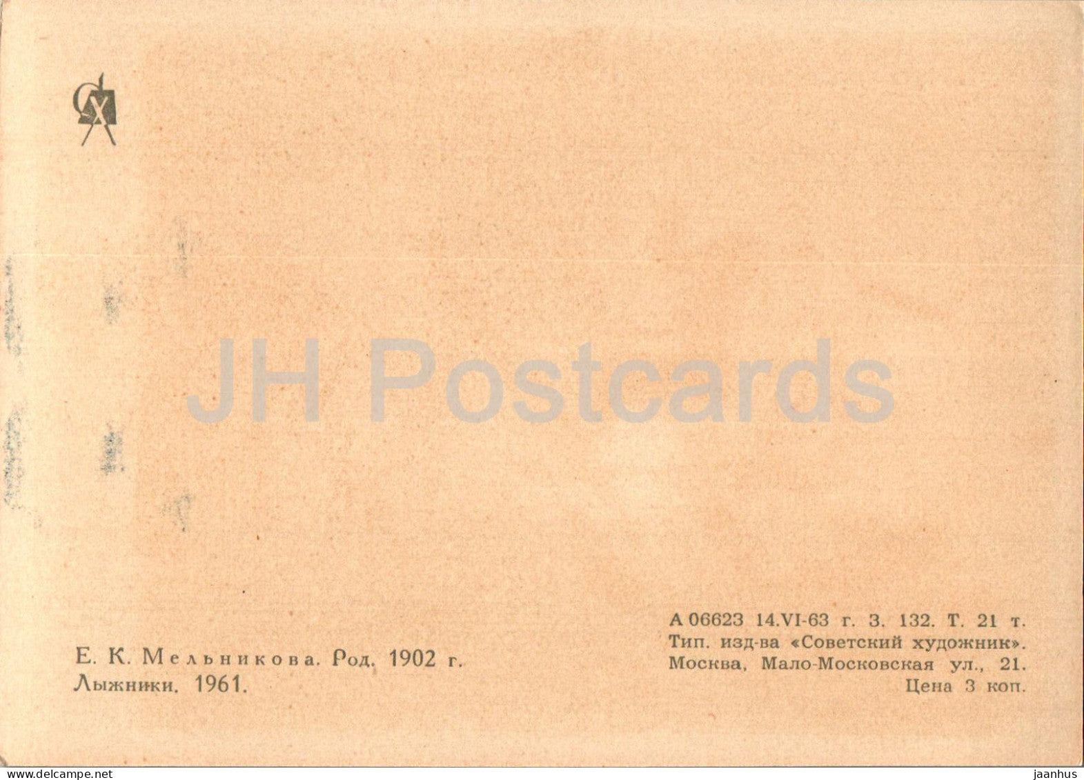 painting by E. Melnikova - Cross Country skiing - sport - Russian art - 1963 - Russia USSR - unused