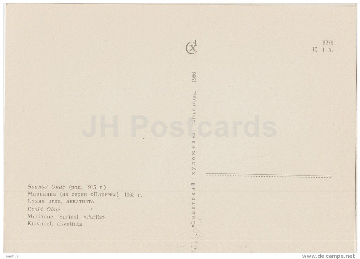 painting by E. Okas - Marianne . Paris , 1962 - woman - Estonian Art - 1966 - Russia USSR - unused