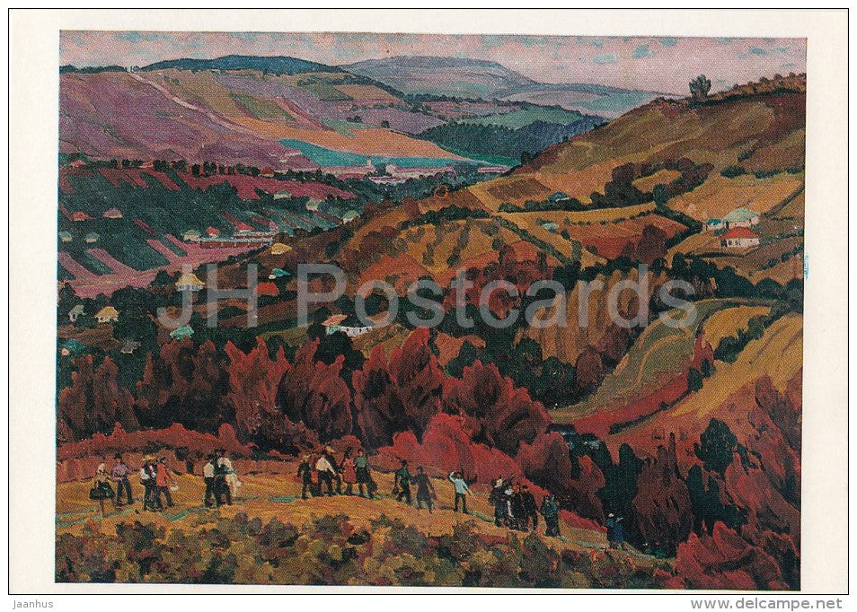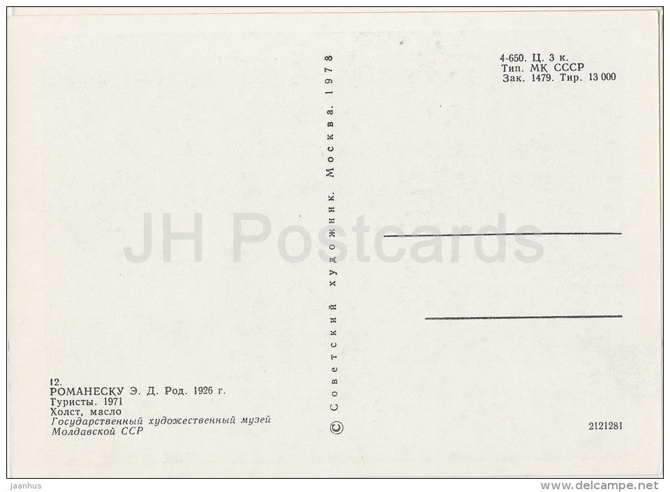 painting by E. Romanescu - Tourists , 1971 - Moldavian art - Russia USSR - 1978 - unused