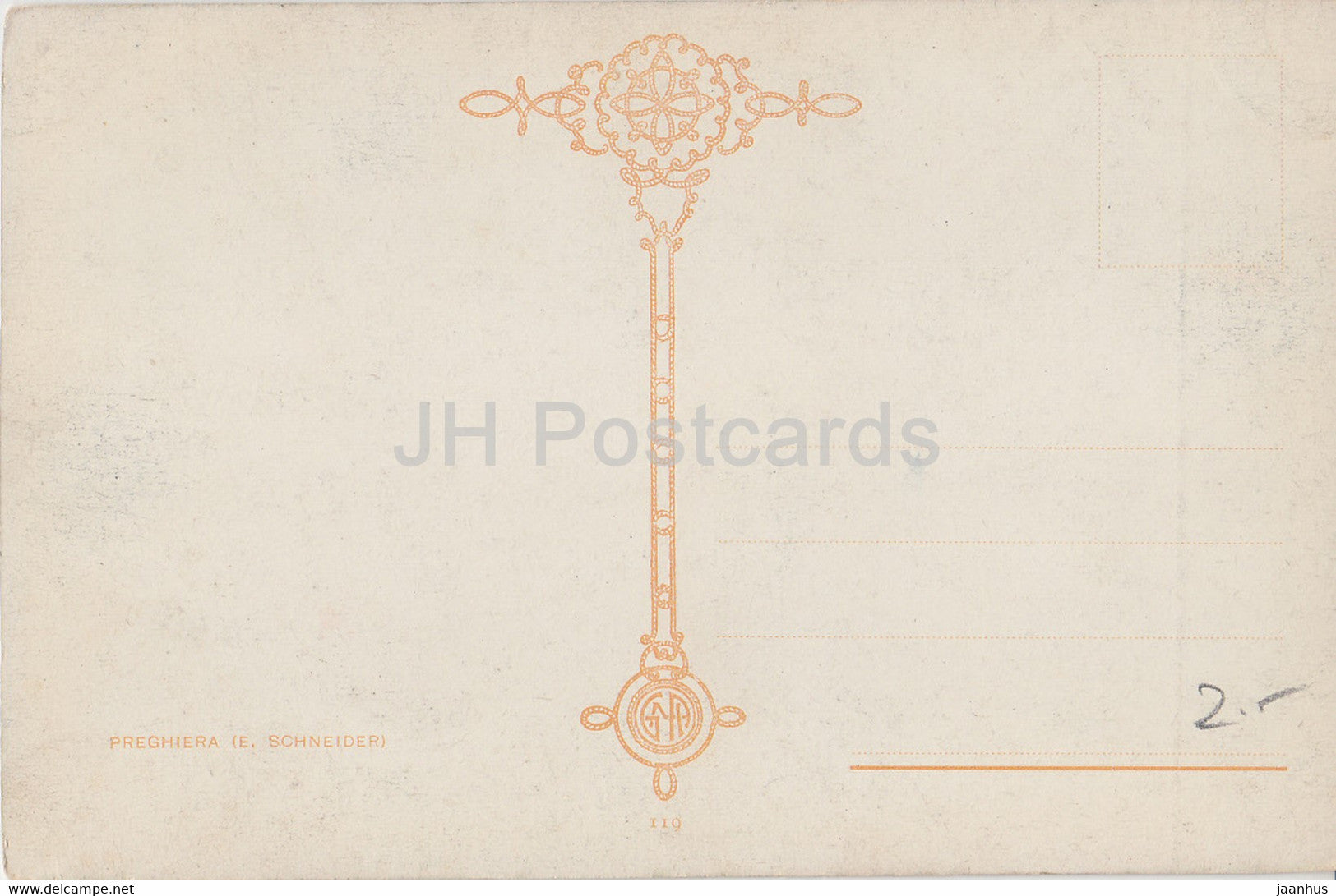 painting by E Schneider - Preghiera - prayer - art - old postcard - Italy - unused