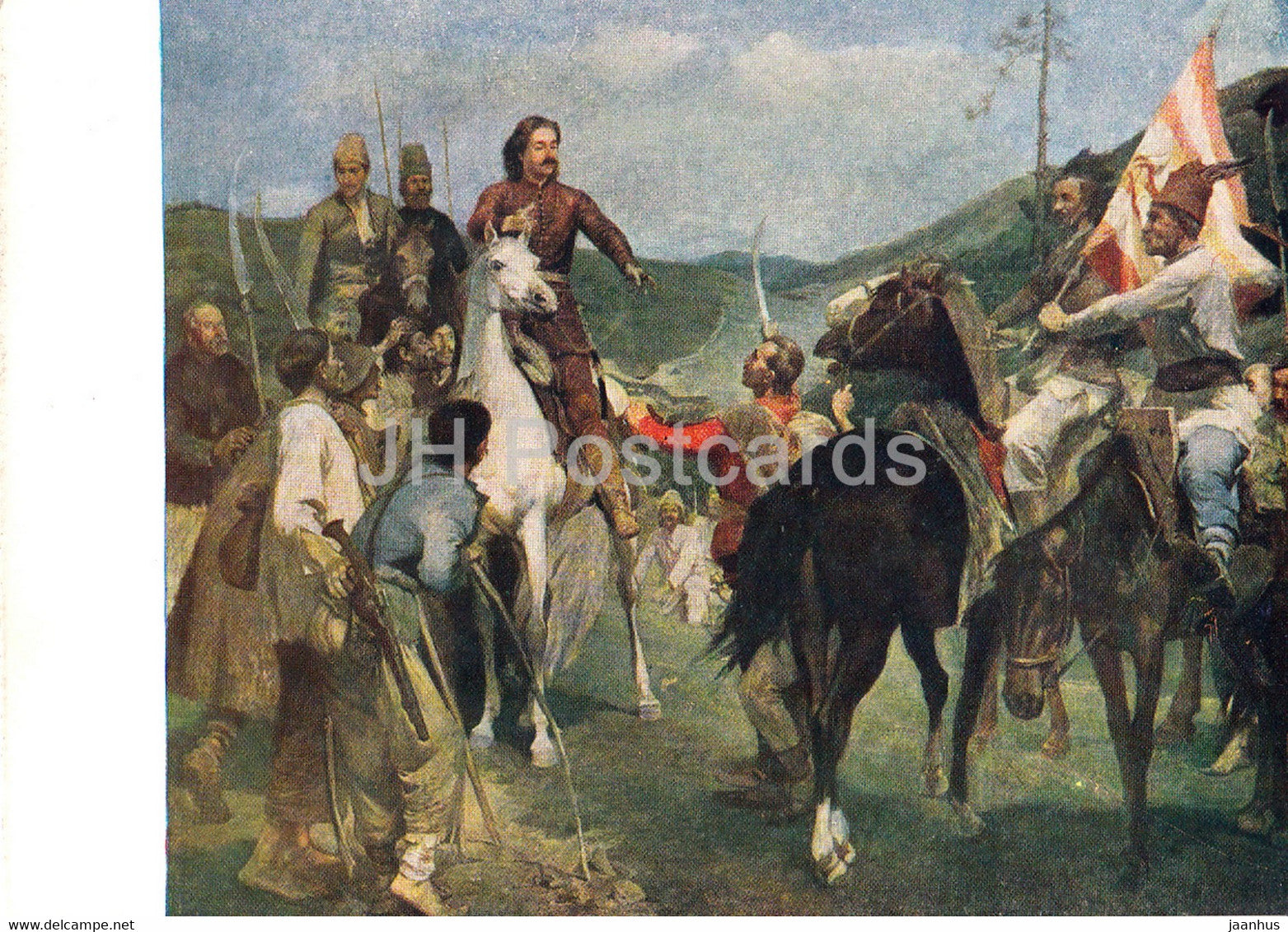 painting by E. Veszpremi - Rakoczi and Esze Tamas meeting - horse - 1 - Hungarian art - 1959 - Russia USSR - unused