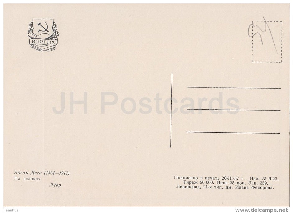 painting by Edgar Degas - At the Races - horses - French art - 1957 - Russia USSR - unused