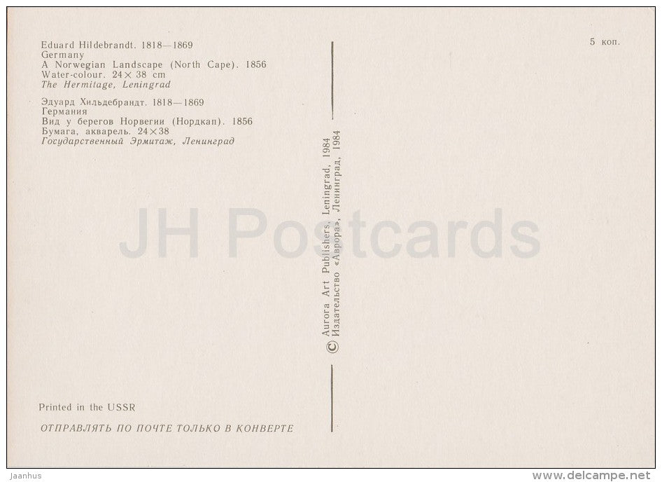painting by Eduard Hildebrandt - A Norwegian Landscape (North Cape) , 1856 - German art - Russia USSR - 1984 - unused