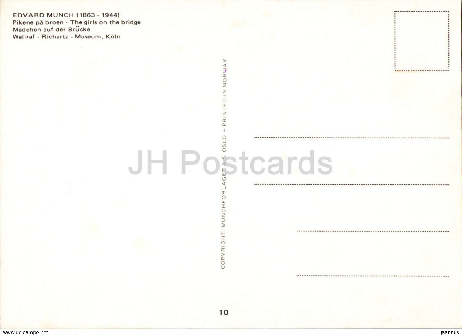 painting by Edvard Munch - Girls on the Bridge - Madchen auf der Brucke - Norwegian art - Norway - unused