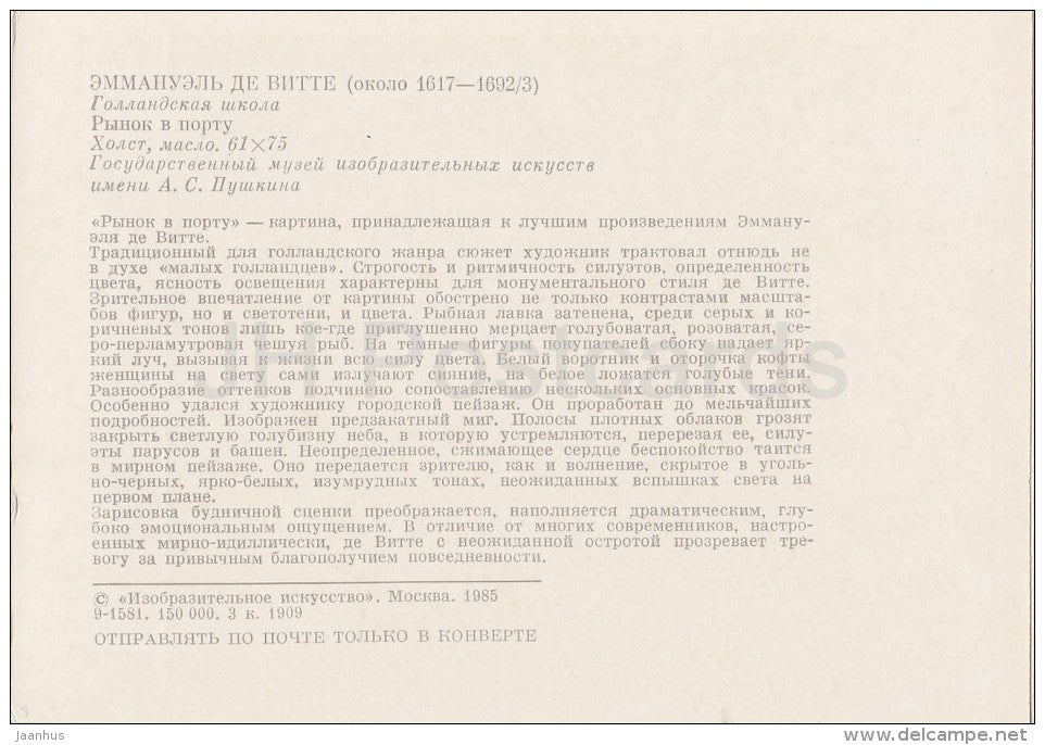painting by Emanuel de Witte - Girl - Market in the Port - Dutch art - Russia USSR - 1985 - unused