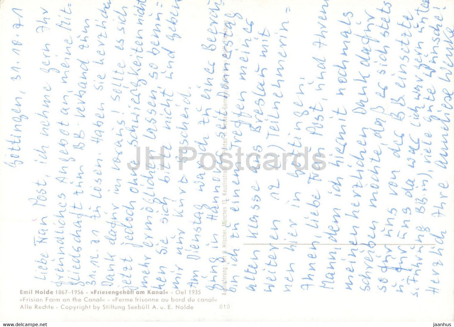 painting by Emil Nolde - Friesengehoft am Kanal - Frisian Farm on the Canal - German art - 1971 - Germany - used