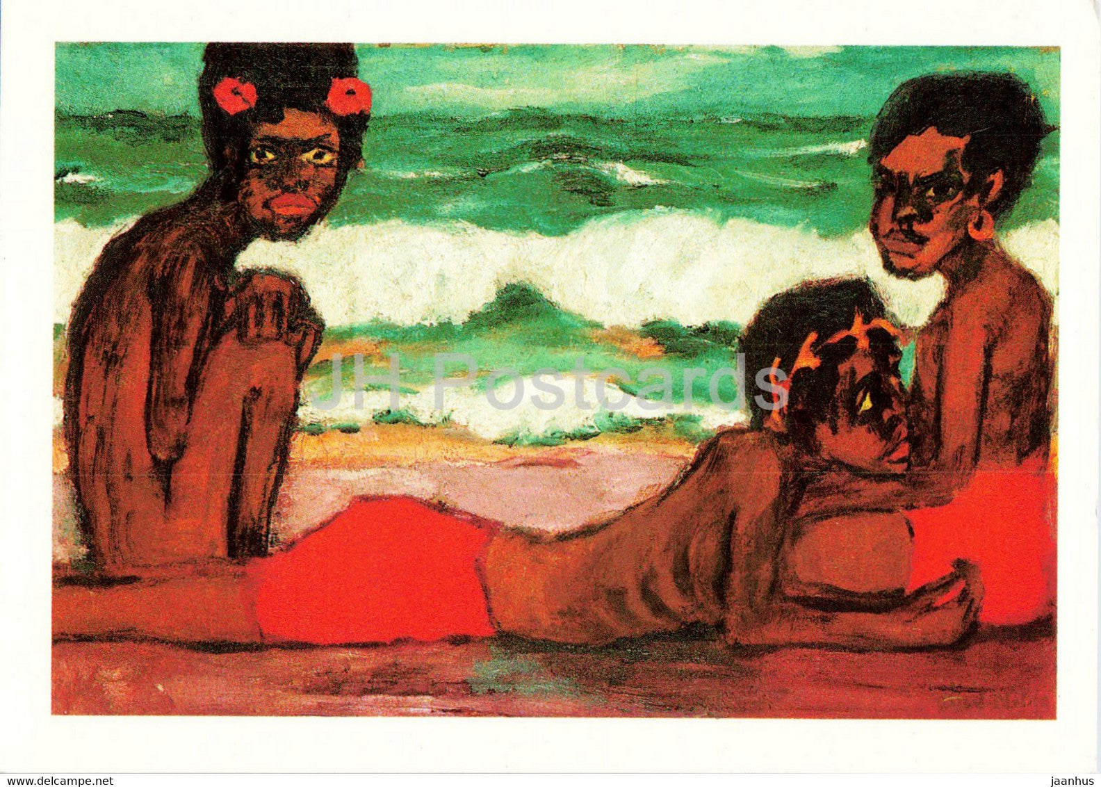 painting by Emil Nolde - Papua Junglinge - Papua children - German art - Germany DDR - unused