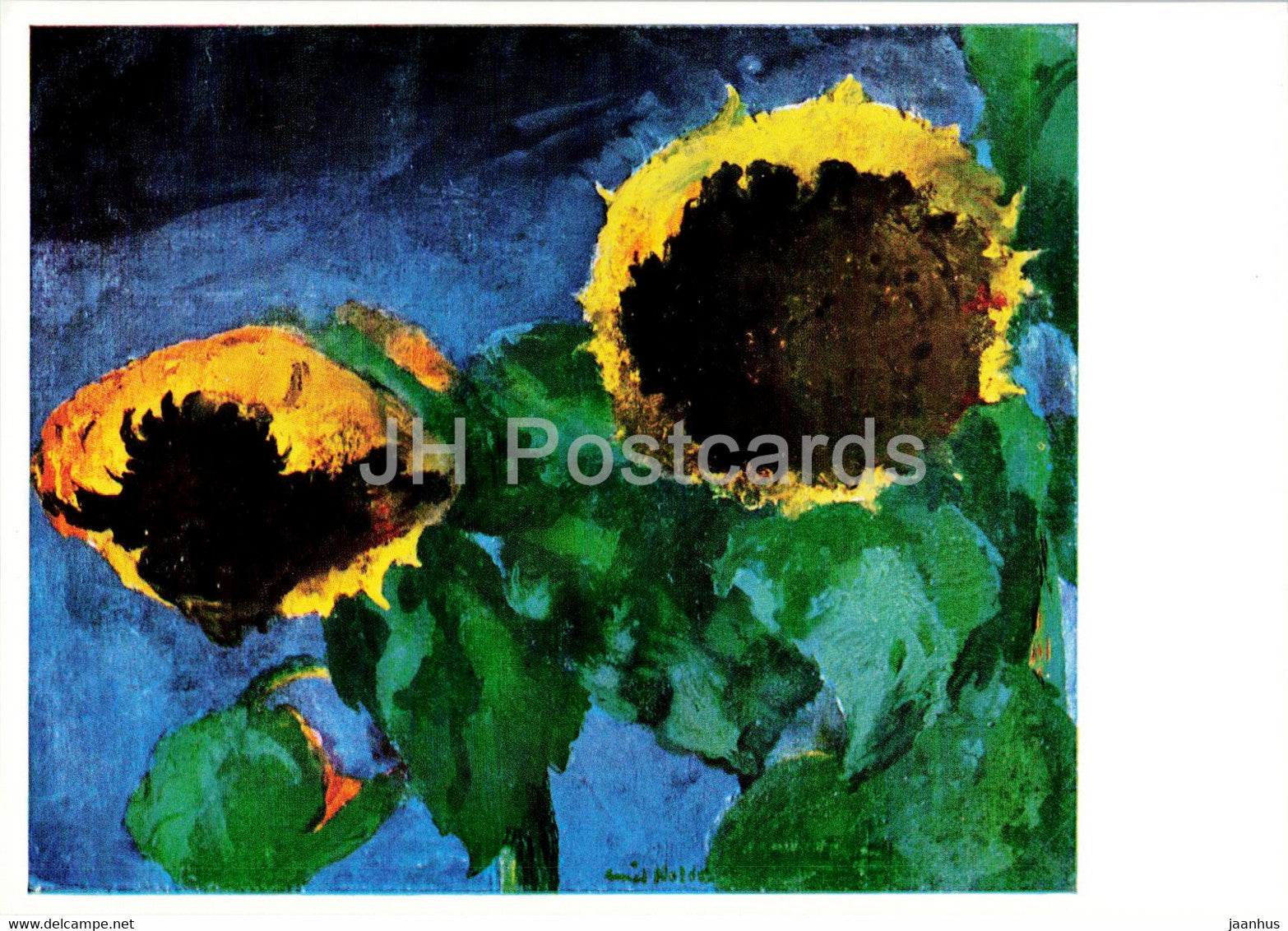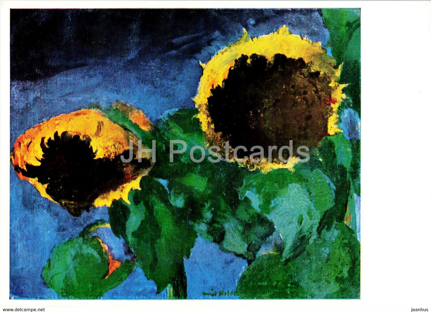 painting by Emil Nolde - Reife Sonnenblumen - Ripe sunflowers - German art - Germany - unused