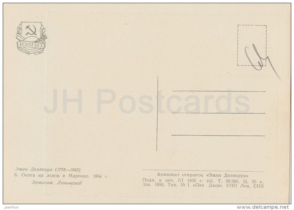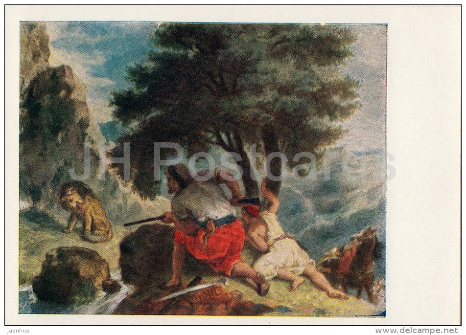painting by Eugene Delacroix - Lion Hunt in Morocco , 1854 - French art - 1959 - Russia USSR - unused