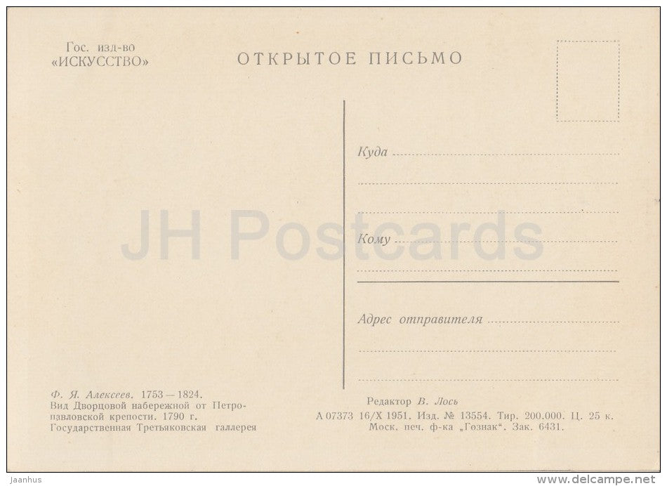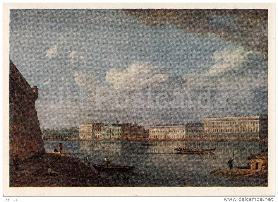 painting by F. Alekseyev - View of Palace Embankment , 1790 - boat - Russian art - 1951 - Russia USSR - unused