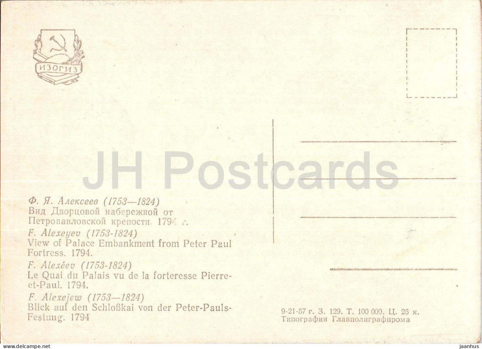 painting by F. Alekseyev - View of Palace Embankment from Peter Paul Fortress Russian art - 1957 - Russia USSR - unused