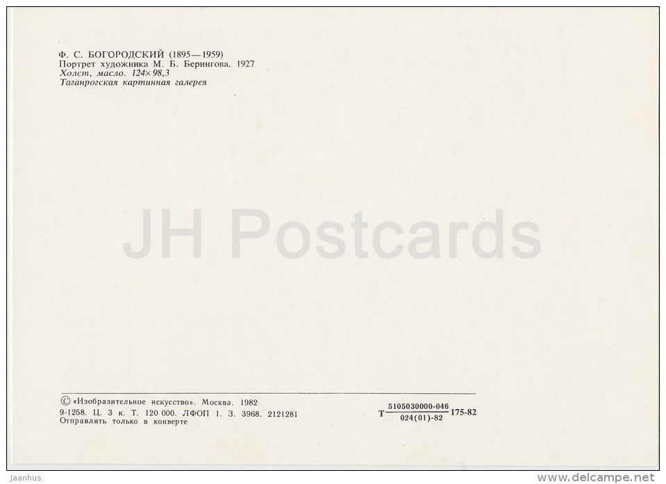 painting by F. Bogorodsky - Portrait of Russian Artist Beringov , 1927 - Russian art - Russia USSR - 1982 - unused